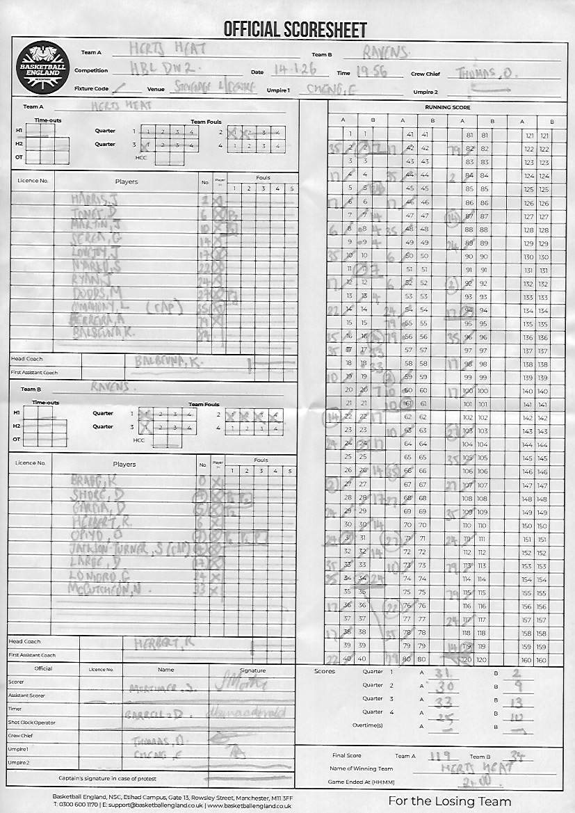 Herts Heat (119 - 34) Ravens (WHITE) Stevenage Arts & Leisure Centre Lytton Way Stevenage SG1 1LZ