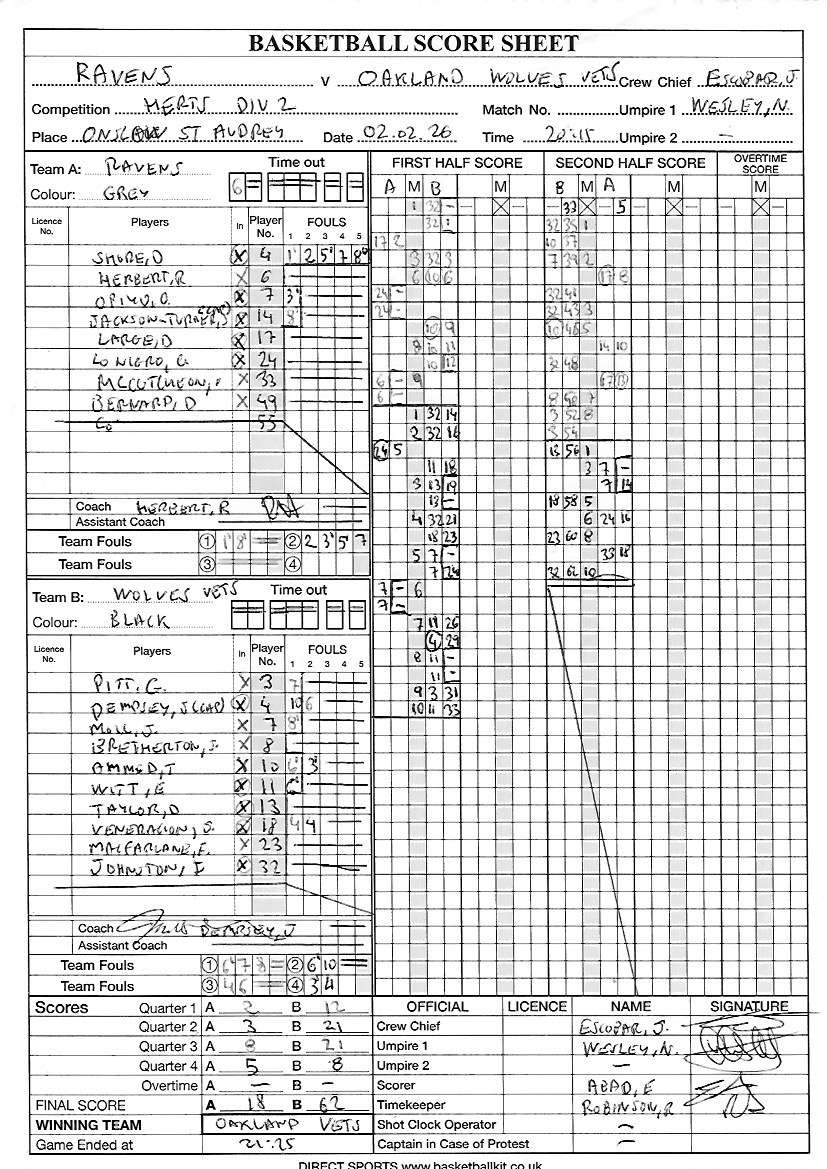 Ravens (WHITE) (31 - 62) North Herts Knights 2 Onslow St Audrey's School Old Rectory Drive Hatfield AL10 8AB